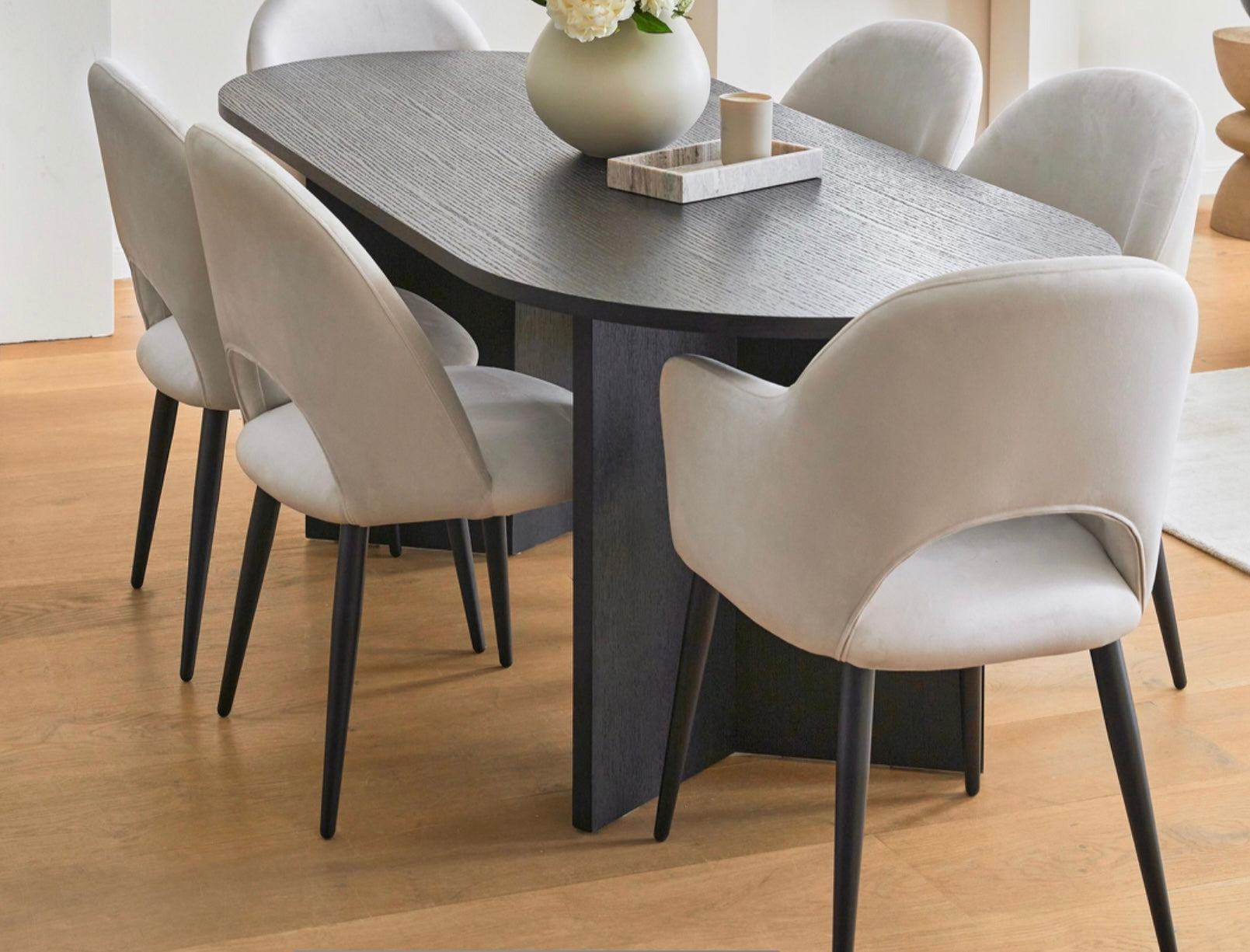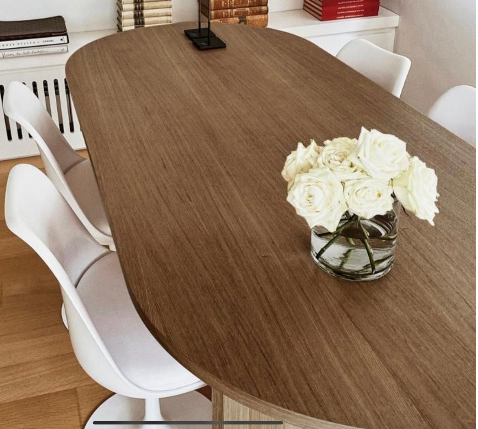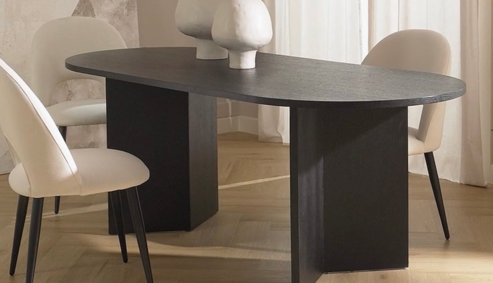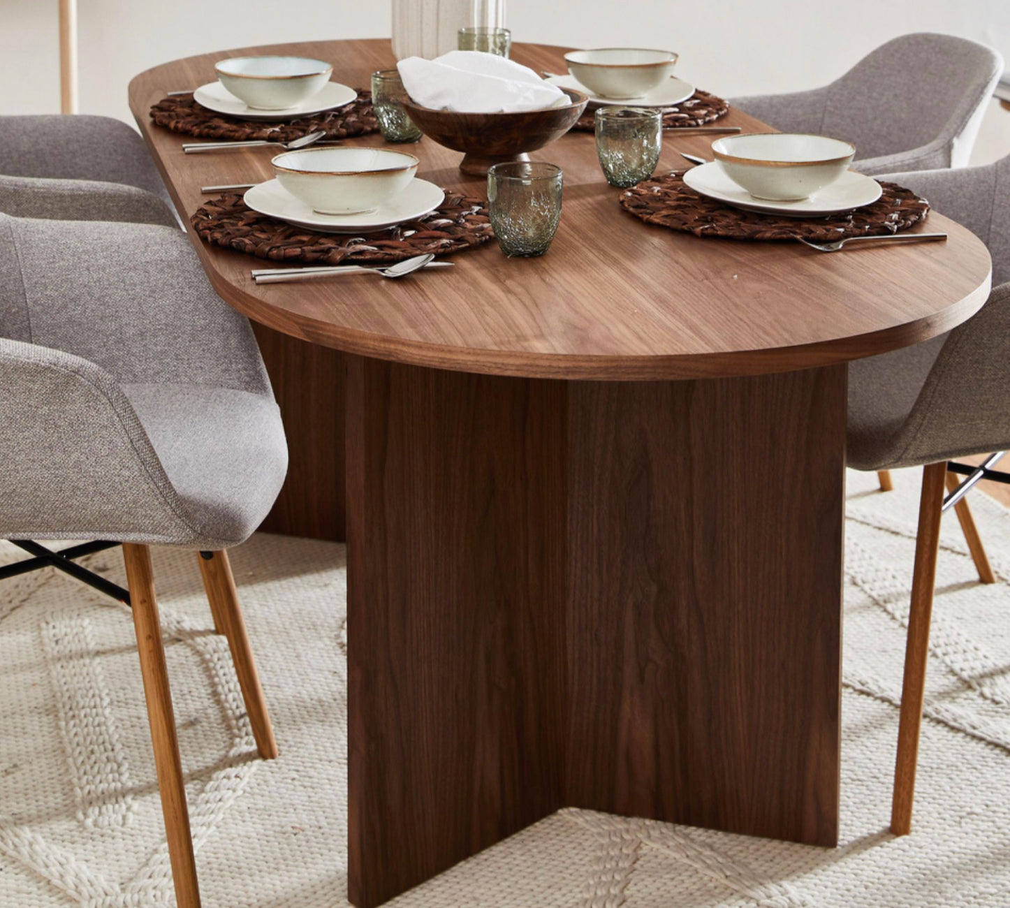 Este comedor sin duda tiene lo que se necesita para ser una pieza central. Con sus patas de forma geométrica y su tablero, se ve increíblemente elegante. ¡Y tienes ganas de enviar invitaciones a cenar! Disponible en diferentes tipos de madera.