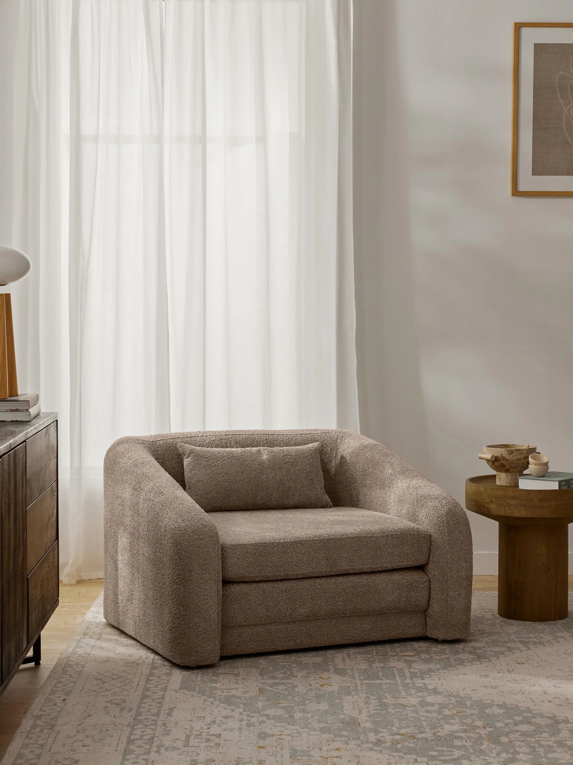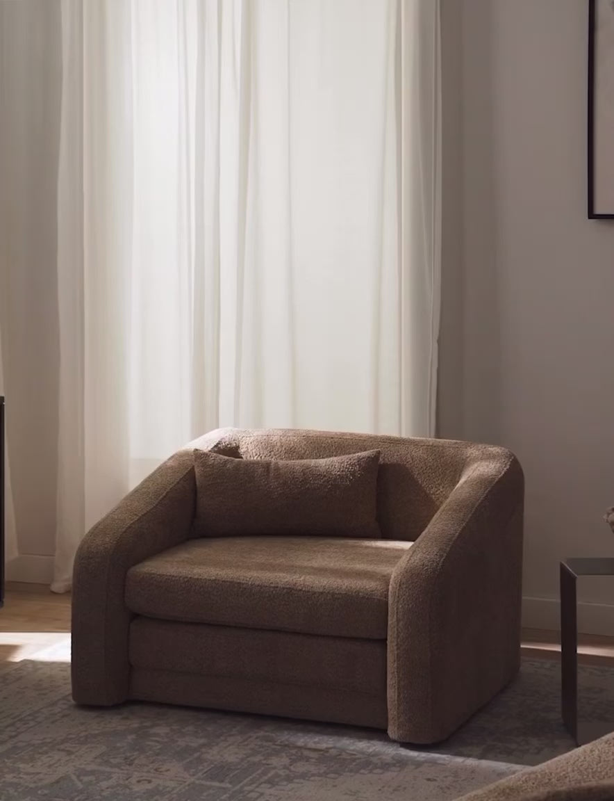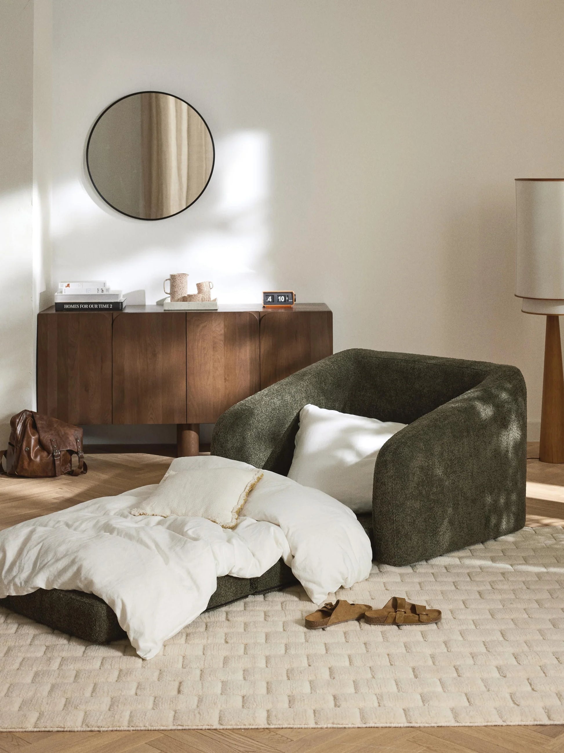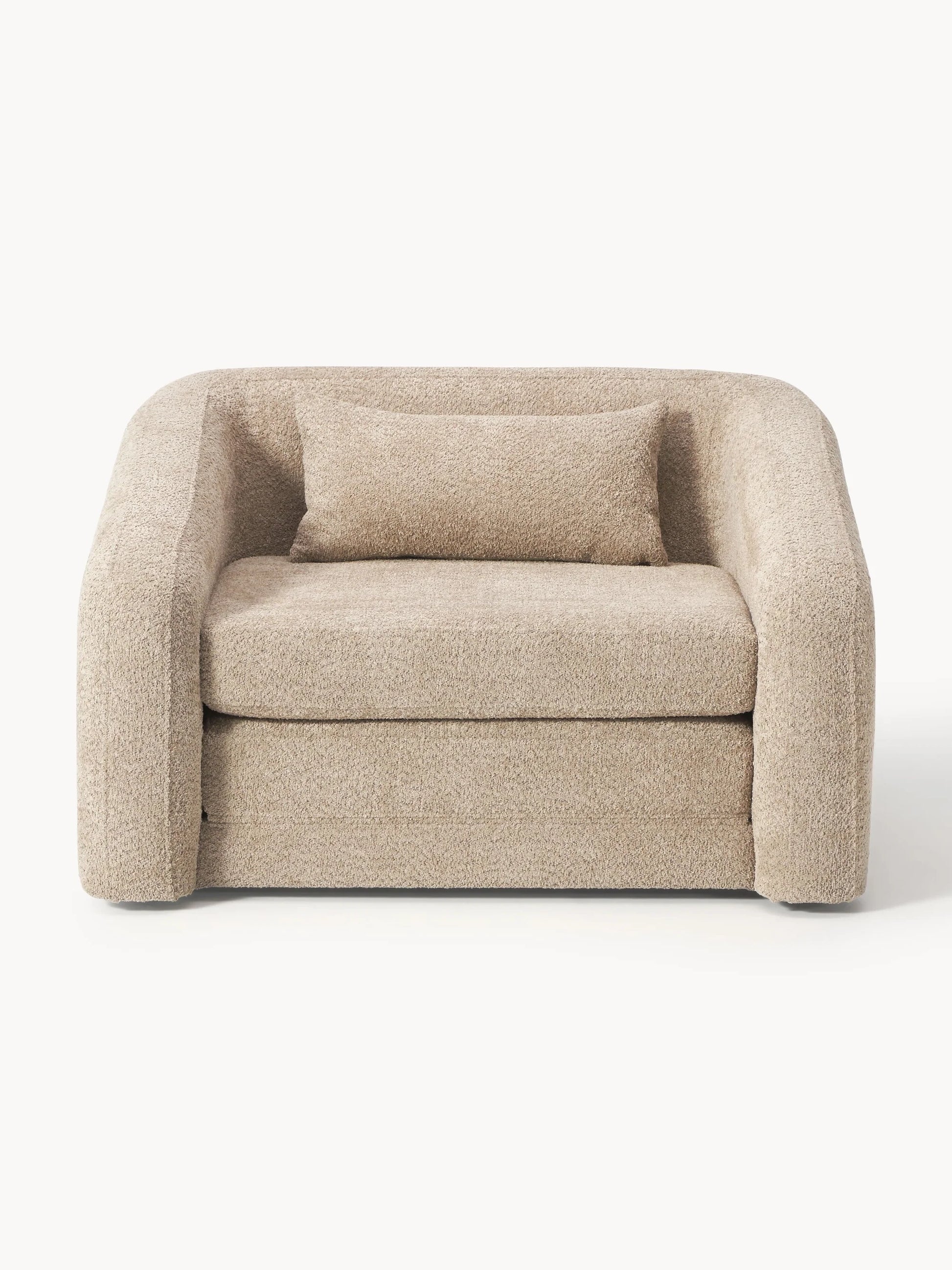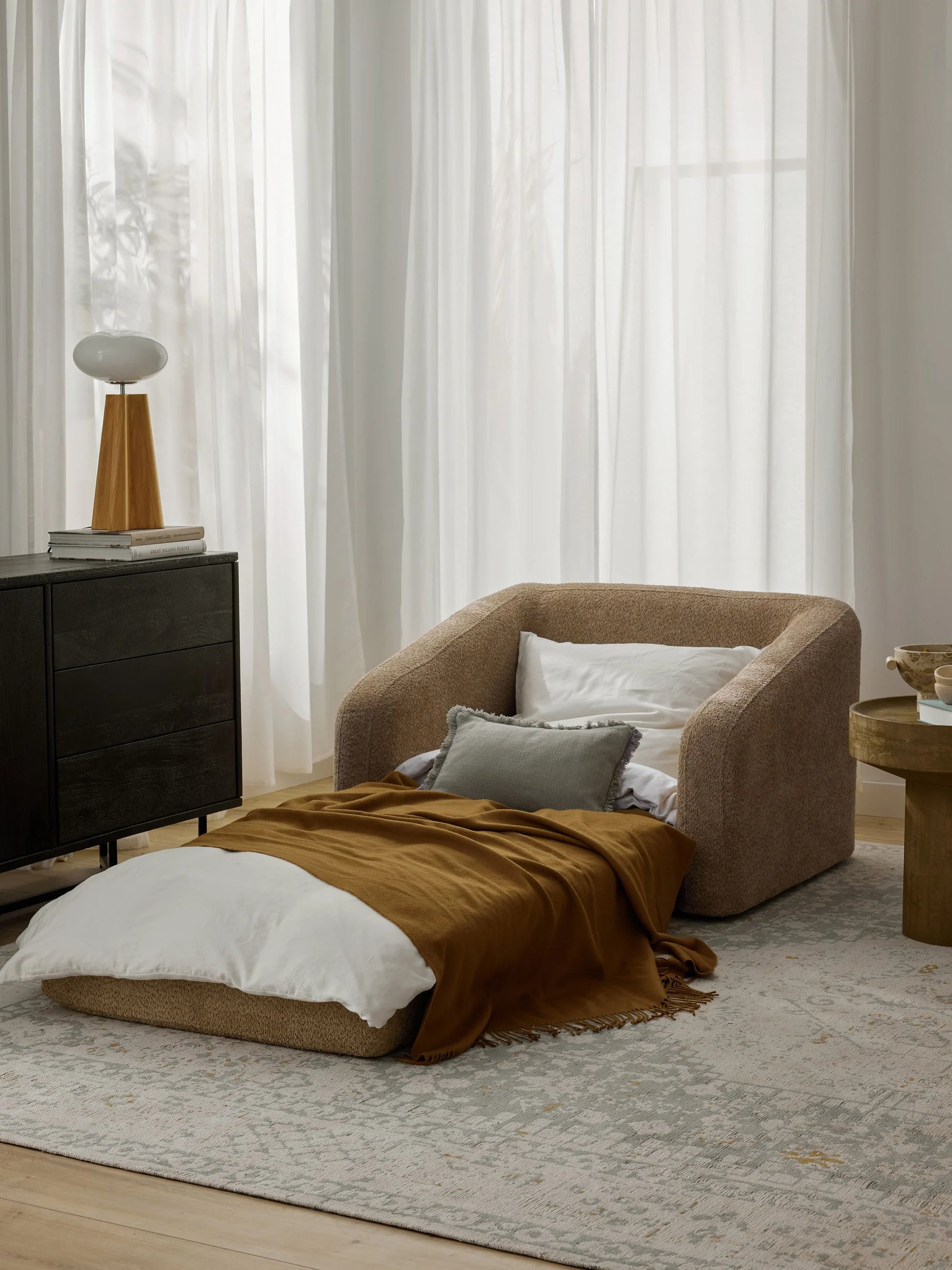 El estilo se une a la funcionalidad: los bordes redondeados, los cojines geométricos y un tapizado suave hacen que estos prácticos sofás cama y sillones ELIOT sean los favoritos absolutos. Los muebles plegables son perfectos para invitados inesperados, ya que se pueden convertir de elegantes asientos a una cómoda cama para dormir en cuestión de minutos.