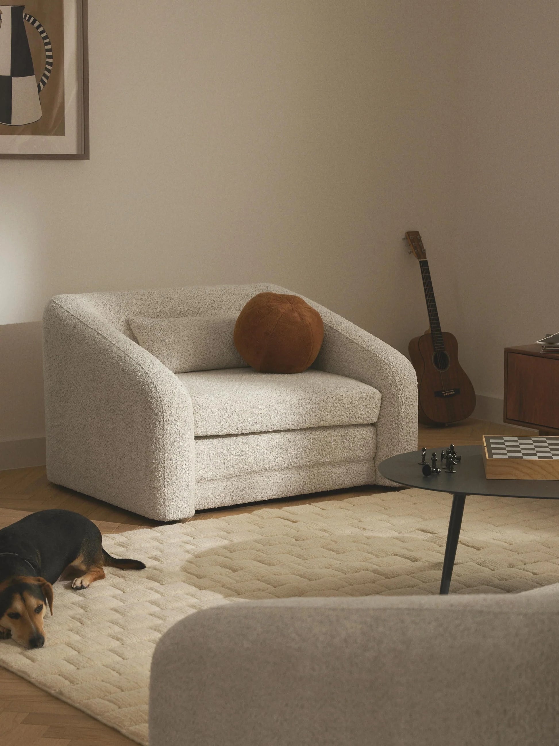 Tapizado: tejido borreguillo bouclé (100% poliéster)